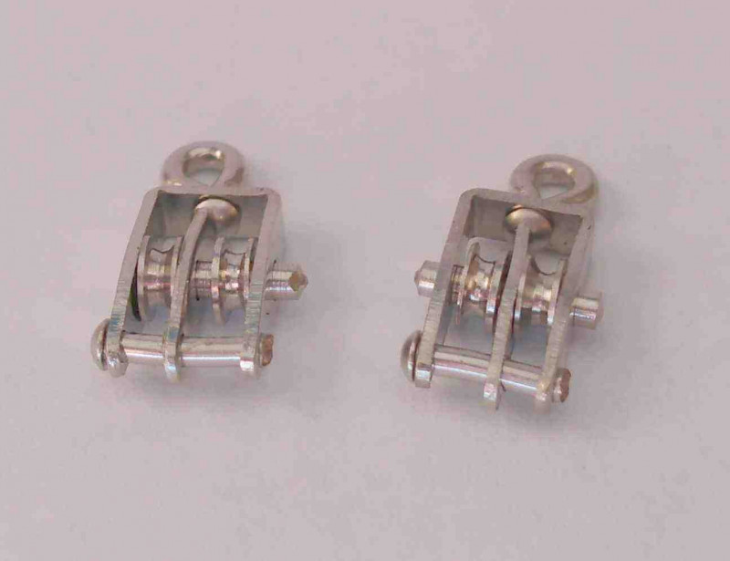 Doppelblock für Modellschiffe, 2 Rollen mit 3 mm ø, vernickelt