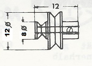 Schnurrolle, Messing, ø 4 mm Bohrung, ø 12 mm Achse, Messing gedreht